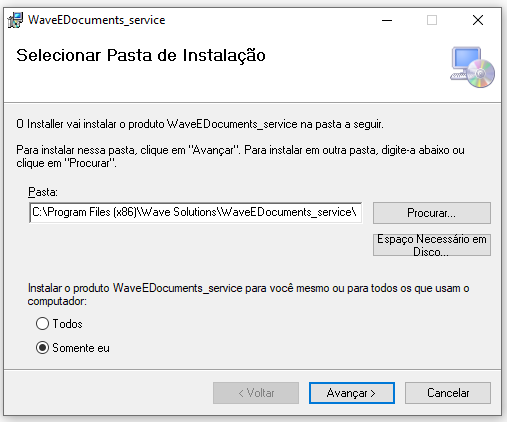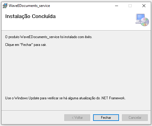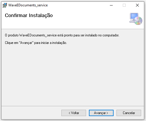 Neste quadro, ao clicar em avançar irá iniciar a instalação do serviço.